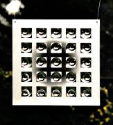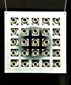 50 x 50 cm, Linsen und Halbkugeln teilweise mattiert (Sandstrahlung), zum Teil beidseitig