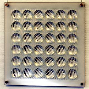 50 x 50 cm, 2-teilige Glascollage, variabel mit Linsen und Sandstrahlung
